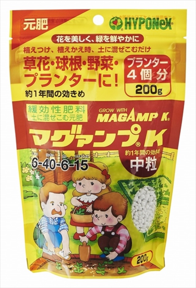 ■【商品名】: 【まとめ買い】マグァンプK中粒×40点セット ■【商品分類】:日用雑貨:ガーデニング・園芸用品:園芸用土・肥料 ■【JAN】:4977517012856 ■【出荷目安】:1〜5営業日(※土日祝除く)。 ■【返品/キャンセル】:注文後のキャンセル、初期不良以外のお客様都合の返品はできません。 ■【領収書・適格請求書の発行について】:資源保護のためペーパーレスを実施しておりますので同封致しません。必要の方は、注文履歴にて、Yahooシステム発行の電子領収書をダウンロードしてください。 <b>##商品詳細情報(単品)##</b> ■【容量】:200G ■【原産国】:日本 ■【メーカー名】:【 ハイポネックスジャパン 】 ■【説明】:▼土に混ぜ込む緩効性肥料▼1回与えるだけで、ゆっくり長く効き続け、植物の生育を良くします。▼リンサン効果で丈夫な根をつくり、花・実つきを良くします。▼草花、球根、野菜、観葉植物など、いろいろな植物に適しています。