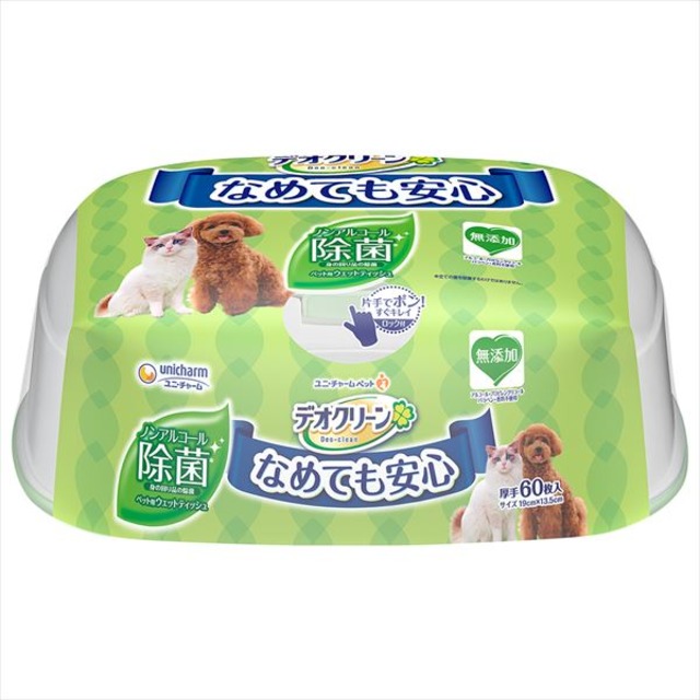 ■【商品名】: 【まとめ買い】デオクリーンノンアルコール除菌WT本体60個×12点セット ■【商品分類】:日用雑貨:ペット用品:その他ペット用品 ■【JAN】:4520699650912 ■【出荷目安】:1〜5営業日(※土日祝除く)。 ■【返品/キャンセル】:注文後のキャンセル、初期不良以外のお客様都合の返品はできません。 ■【領収書・適格請求書の発行について】:資源保護のためペーパーレスを実施しておりますので同封致しません。必要の方は、注文履歴にて、Yahooシステム発行の電子領収書をダウンロードしてください。 <b>##商品詳細情報(単品)##</b> ■【容量】:60個 ■【原産国】:日本 ■【メーカー名】:ユニ・チャーム ■【説明】:ペットがなめても安心ノンアルコール除菌ワンタッチオープン!ペットを抱っこしても片手で取り出せてらくら