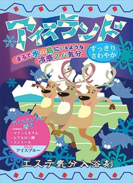 ■【説明】:まるで氷の島にいるような冷感スパ気分の分包入浴剤。マリンミネラル、ヒアルロン酸、メントール配合で、湯上り後もすっきり爽やか。アイスミントの香り。