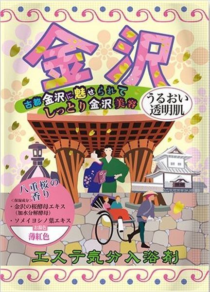 ■【説明】:金沢の桜酵母エキス配合。古都金沢を感じられるしっとりスキンケア入浴剤。薄紅色の湯。八重桜の香り。