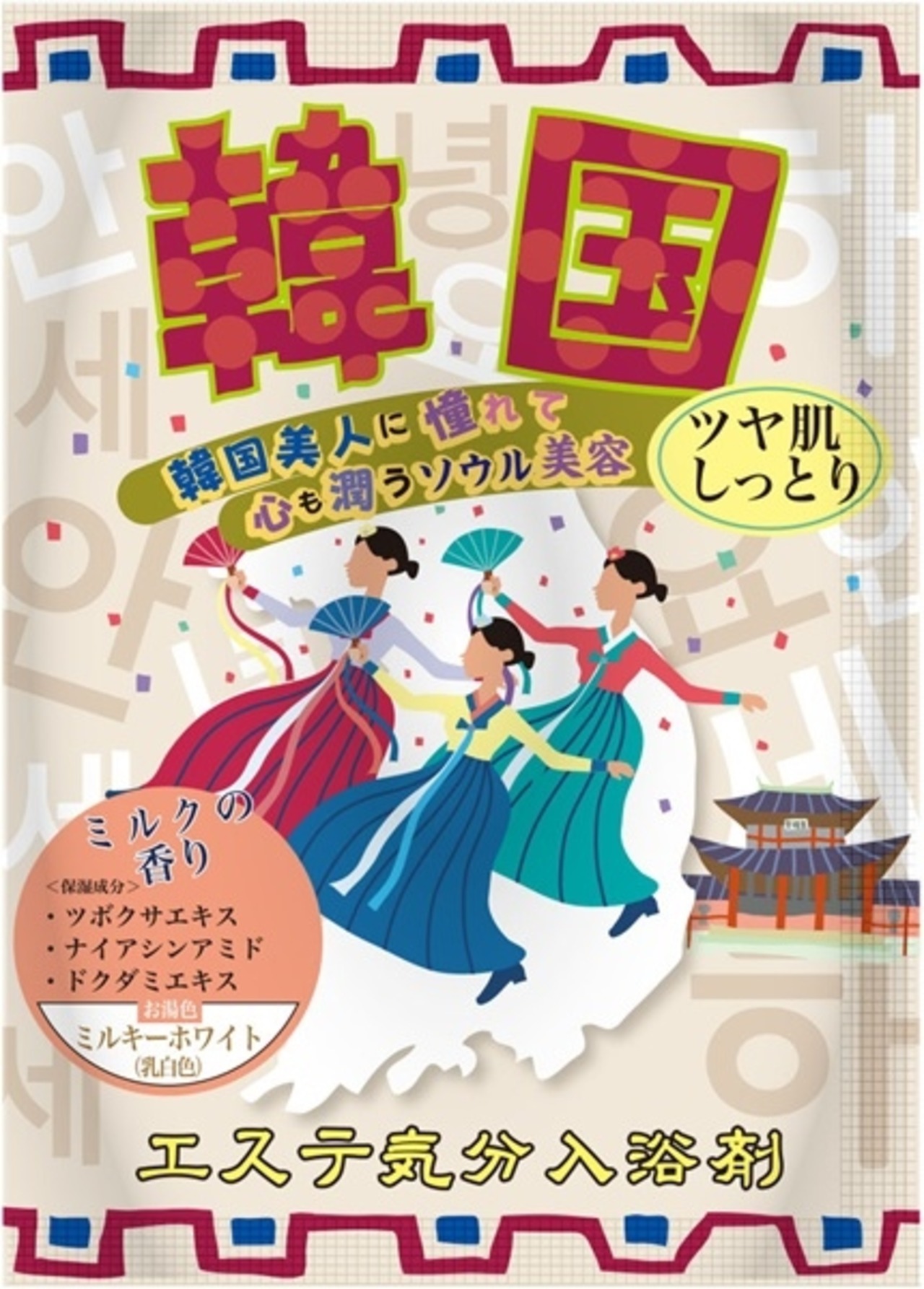 ■【説明】:心も潤うソウル美容風呂。ミルクの香り。ミルキーホワイトの湯色(白濁)。保湿成分ツボクサエキス、ナイアシンアミド、ドクダミエキス配合。