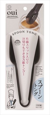 ■【説明】:片面スリット入りで汁切りもできる万能トングです。スプーン形状だからつかみやすい。