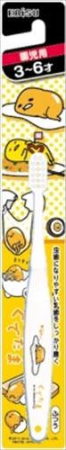 ■【説明】:人気上昇中のサンリオキャラクター「ぐてたま」を採用。外側やわらかめ植毛で歯ぐきをいたわりながら、虫歯になりやすい乳歯と歯ぐきの境目もしっかり磨きます。
