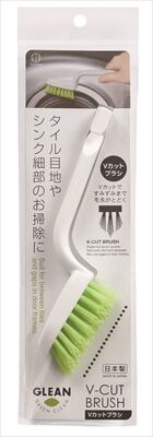 ■【説明】:Vカットブラシですみずみまで毛先が届くので、タイル目地やシンク細部のお掃除に便利です。