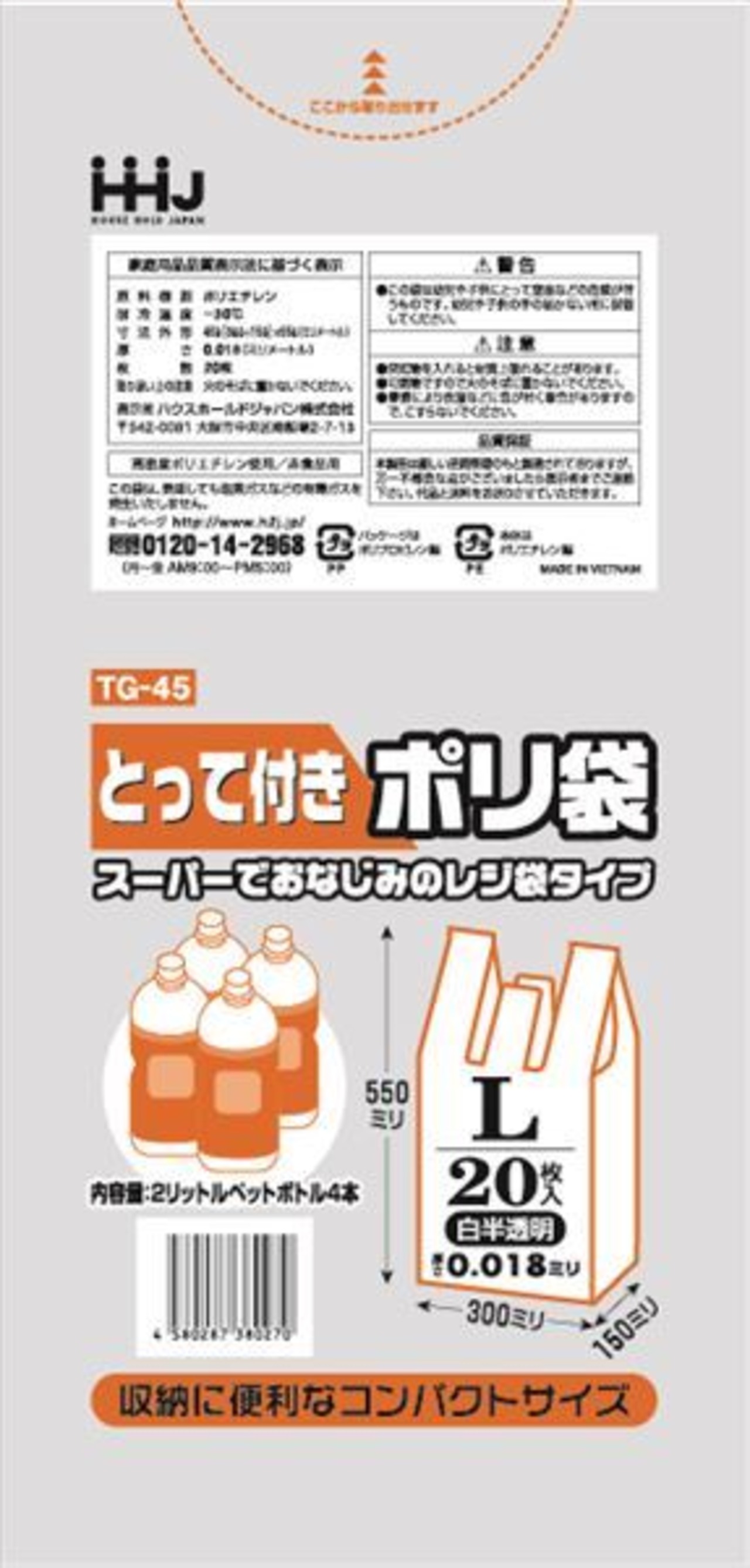 ■【説明】:TG45とって付きポリ袋Lサイズ白20枚