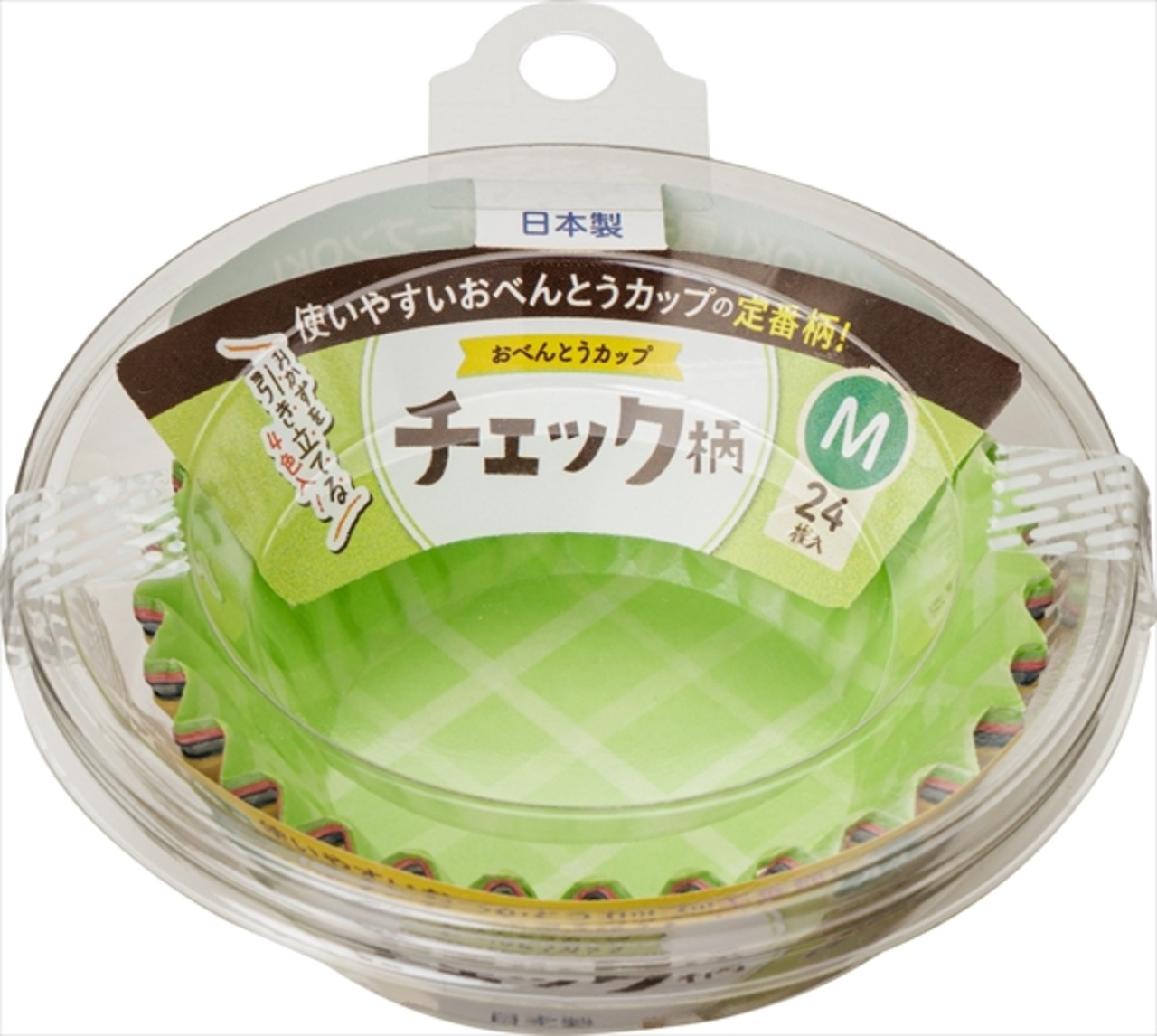 ■【説明】:おべんとカップ人気のチェック柄に定番の赤・黄・緑に+紺色を追加しています。外装容器にバイオマス10%含有PETを使用。