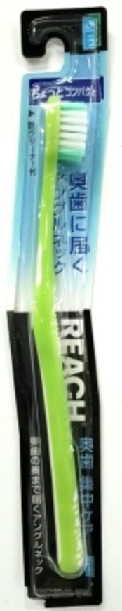 ■【説明】:アングルネックと2段階のフラット毛が奥歯の奥にしっかり届き、きちんと磨けます。レギュラーよりもちょっとコンパクトなヘッドサイズ。