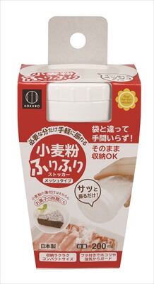 ■【説明】:必要な分だけ手軽に小麦粉が振れます。袋と違って手間いらずそのまま収納できます。