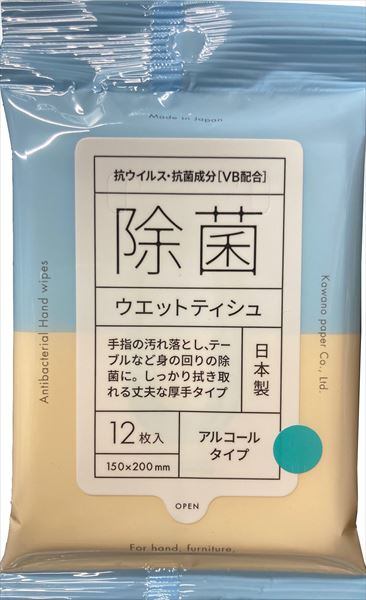 【まとめ買い】抗ウイルス・抗菌成分(VB)配合除菌アルコールウエット12枚 【 河野製紙 】【HRM-22596258-3】×10点セット