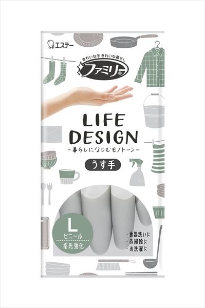 【まとめ買い】ファミリー ビニールうす手 ライフデザイン L グレー 【 エステー 】 【 炊事手袋 】【HRM-20760154-3】×10点セット
