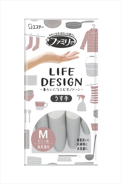 【まとめ買い】ファミリー ビニールうす手 ライフデザイン M グレー 【 エステー 】 【 炊事手袋 】【HRM-20760153-3】×10点セット