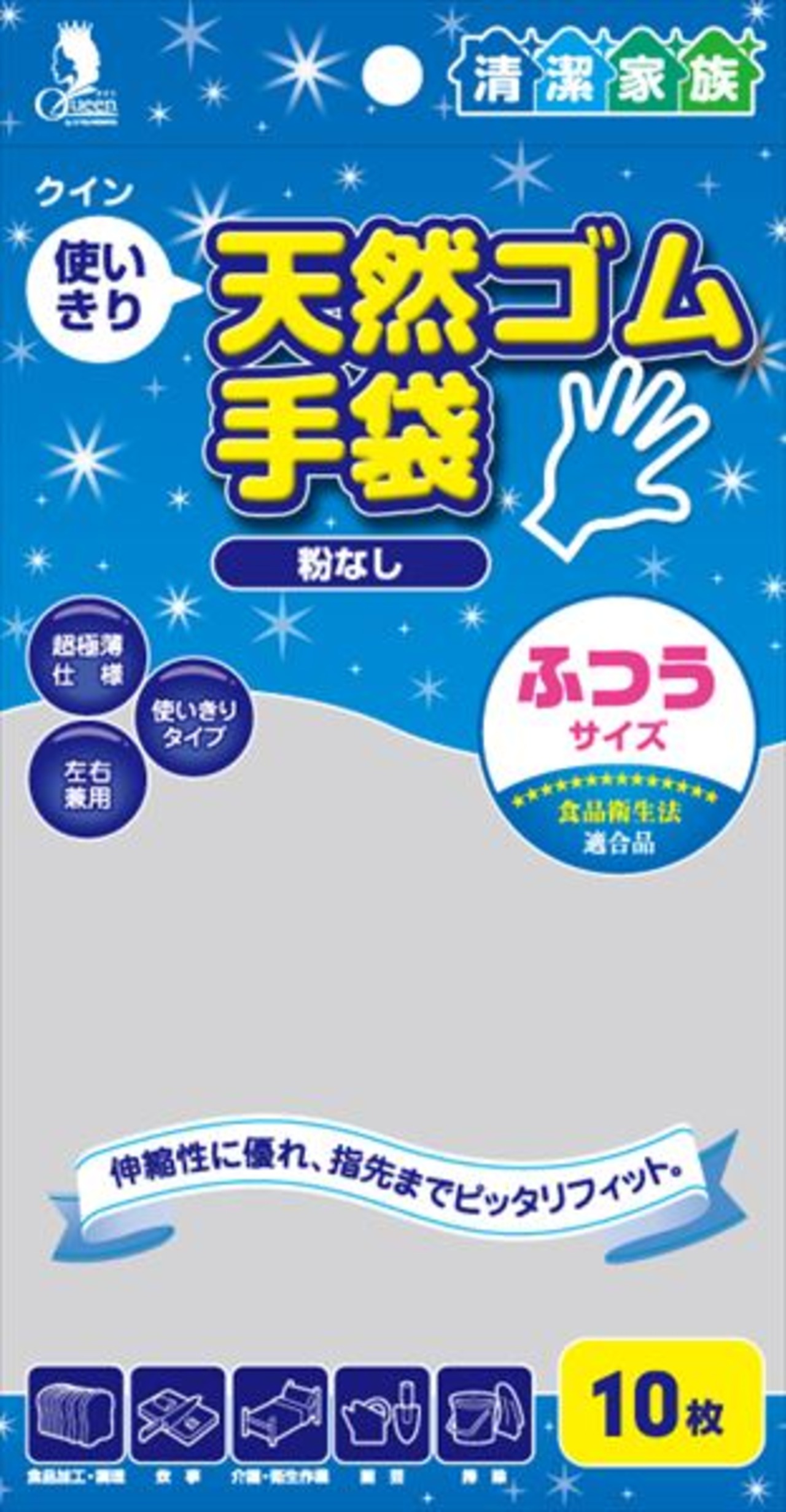 ■【商品名】: 【まとめ買い】クイン天然ゴム手袋M10枚袋入×10点セット