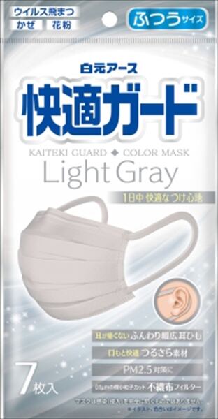 【まとめ買い】快適ガードマスク ふつうサイズ ライトグレー 7枚入 【 白元アース 】 【 マスク 】【HRM-19988139-3】×10点セット