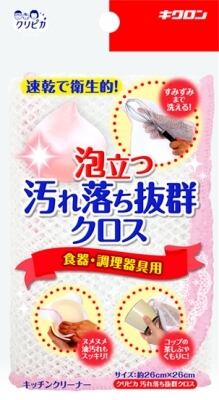 ■【説明】:パイルネットのクロスだから泡立ち抜群。立体パイルが汚れをかき落とします。水切れが良く、乾きが早くて衛生的。自由に形を変えられるクロスタイプなので、大きい場所は広げて洗え、お弁当箱のスミや指が入らない細かい部分もラクに洗えます。