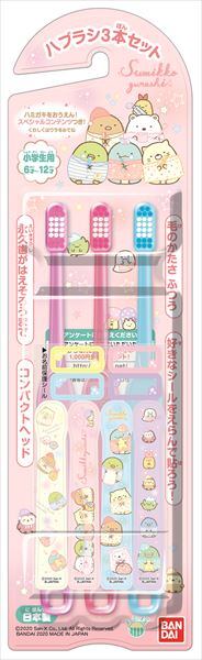 ■【説明】:使いやすい「すみっコぐらし」ハブラシの3本セット。選べる4種類のデザインシール&お名前保護シール付き!歯ぐきを痛めない丸い毛先。