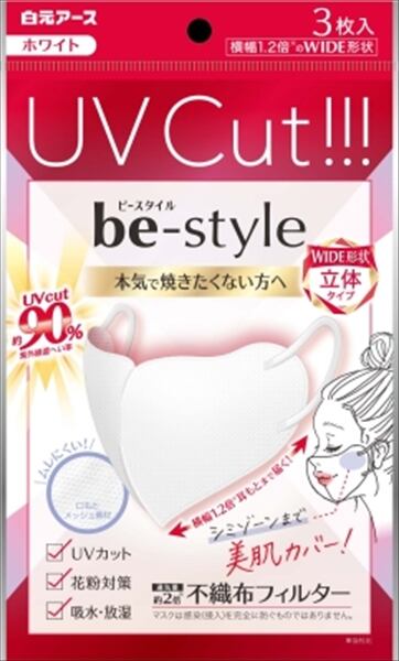 【まとめ買い】ビースタイル UVカットマスク ホワイト 3枚入 【 白元アース 】 【 マスク 】【HRM-18849768-3】×10点セット