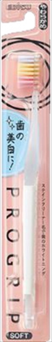 ■【説明】:プログリップハブラシTYPE3の「やわらかめ」を追加発売。一本一本がラバーに覆われた特殊毛「ステインクリーナー毛」を採用。三角断面の毛が歯面の着色汚れを効果的に除去してホワイトニング。薄型ヘッドで奥歯の奥に届く。隅々まで丁寧に磨けるコンパクトヘッド。