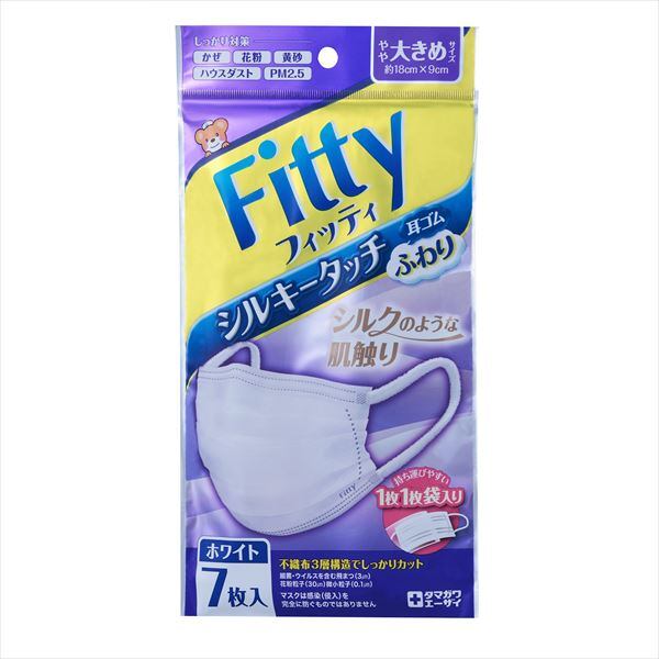 【まとめ買い】フィッティシルキータッチ耳ゴムふわり7枚入 ホワイト やや大きめサイズ 【 玉川衛材 】【HRM-22522398-3】×10点セット