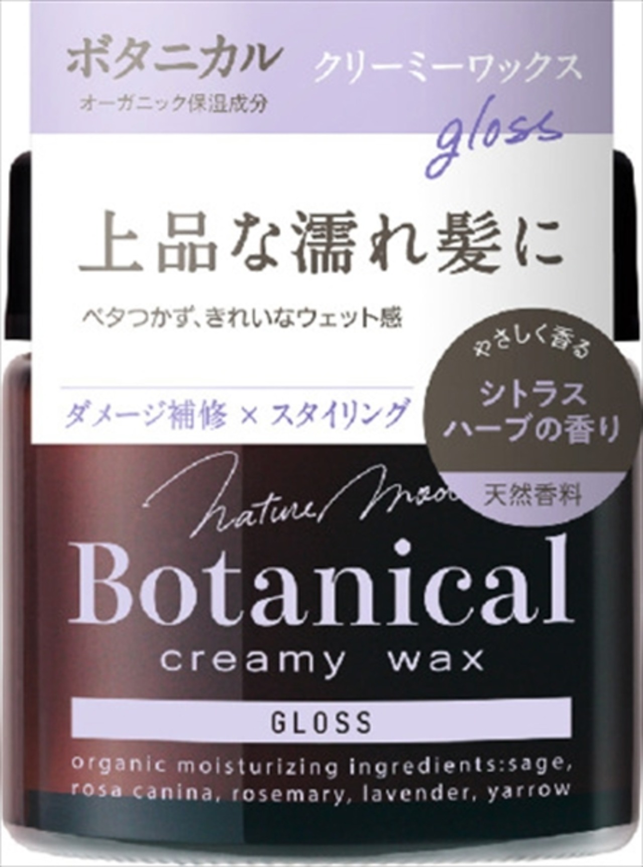 ■【説明】:オーガニックエキス(保湿)や植物性補修成分などこだわりのボタニカル成分を配合し、髪をいたわりながら上品な濡れ髪を表現するクリーミータイプワックスです。ツヤと毛束感でウェットな質感をキープし、仕上がりの重さが気になりません。上品な濡れ髪をキープしたい方、ツヤやしっとり感が欲しい方に。天然精油からつくられた<シトラスハーブ>の香り(合成香料不使用)