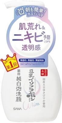 ■【説明】:豆乳の純白泡洗顔。忙しい朝にも簡単プッシュで、肌荒れ&ニキビしながら透明感のある肌に洗い上げます。[販売名:サナ なめらか本舗 薬用泡洗顔]