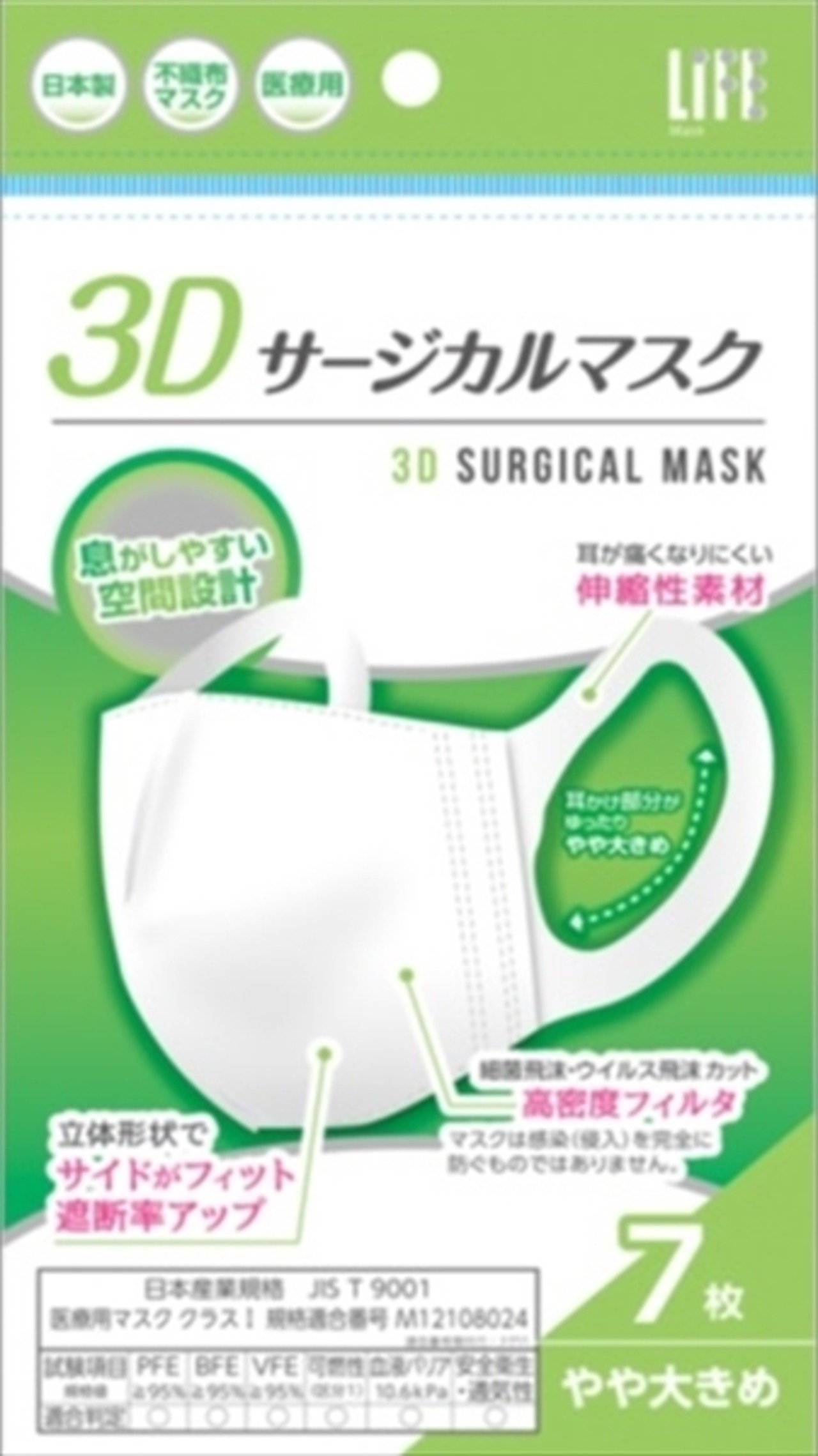 ■【商品名】: 【まとめ買い】3Dサージカルマスクやや大きめサイズ7枚×10点セット