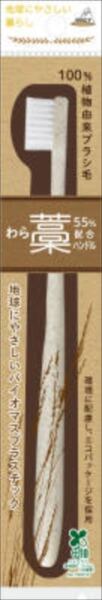 ■【説明】:ハンドル部分はわら材55%配合、ブラシ部分には100%植物油(ひまし油)から作られたナイロン毛を使った環境に優しいハブラシです。SDGs取組商品です。