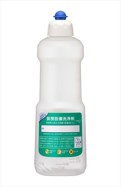 ■【説明】:マジックリン除菌プラス、Kaoグリドル用クリーナーに使用できる、厨房設備洗浄剤用つめかえ容器です。希釈に便利な計量目盛り付きです。ラベルの色で他のつめかえ容器と識別しやすく、長期間の使用でもラベルがはがれにくい容器です。