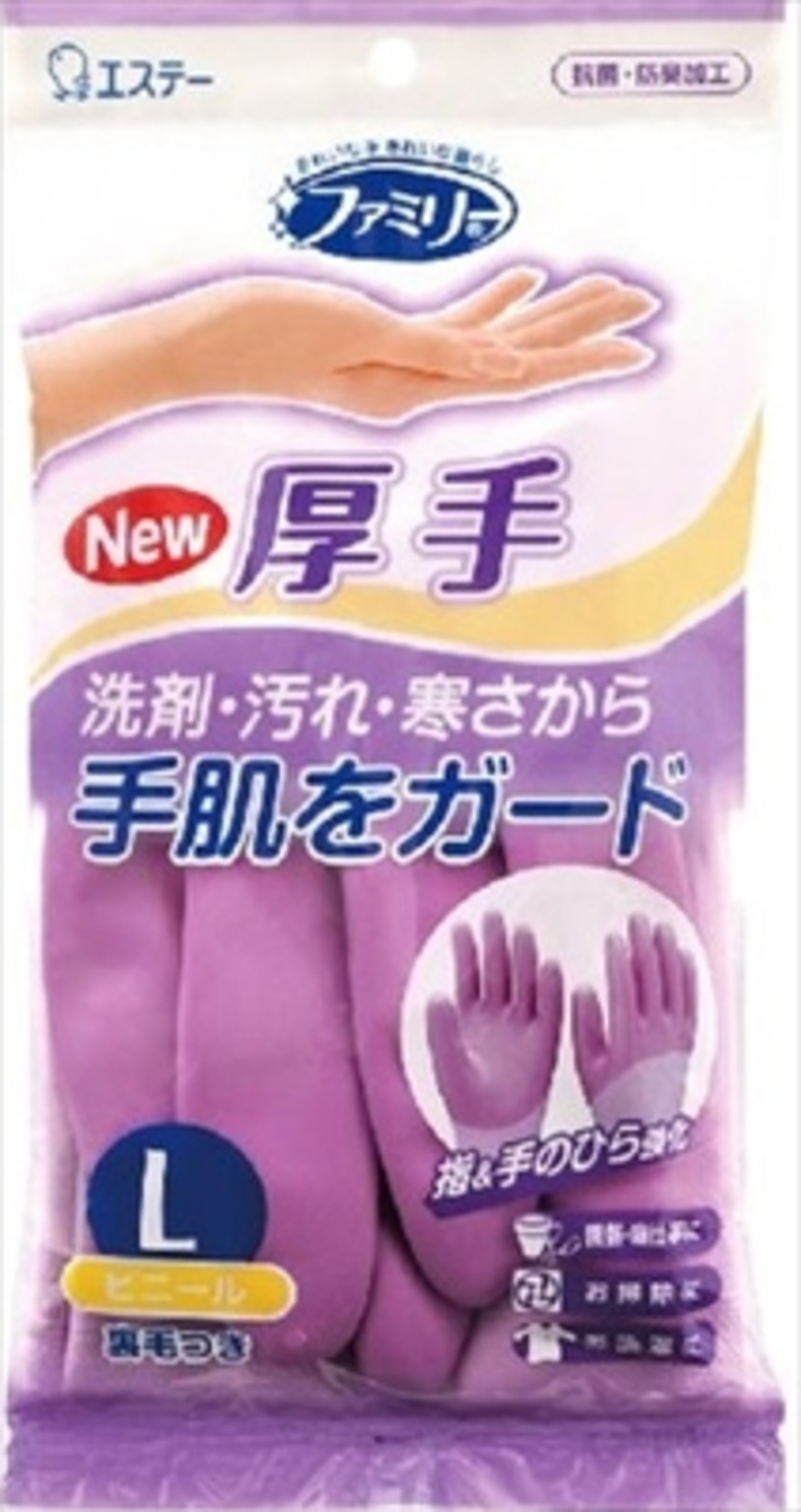 【まとめ買い】ファミリー ビニール 手袋 厚手 指・手のひら強化 炊事・掃除用 Lサイズ パープル【HRM-6817742-3】×10点セット