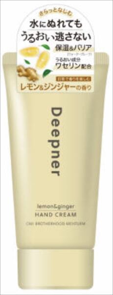 ■【説明】:●バリア効果で水にぬれてもうるおい逃さないハンドクリーム。●水仕事など様々な刺激から手肌を守り、長時間うるおう。●保護成分ワセリン、整肌成分ビタミンE(酢酸トコフェロール)、ビタミンP(グルコシルヘスペリジン)配合。●肌なじみが良いうるおい成分ホホバ油、スクワラン配合。●サラッとなじんでベタつかないので、デイリー使いにおすすめ。●フレッシュなレモン&ジンジャーの香り。