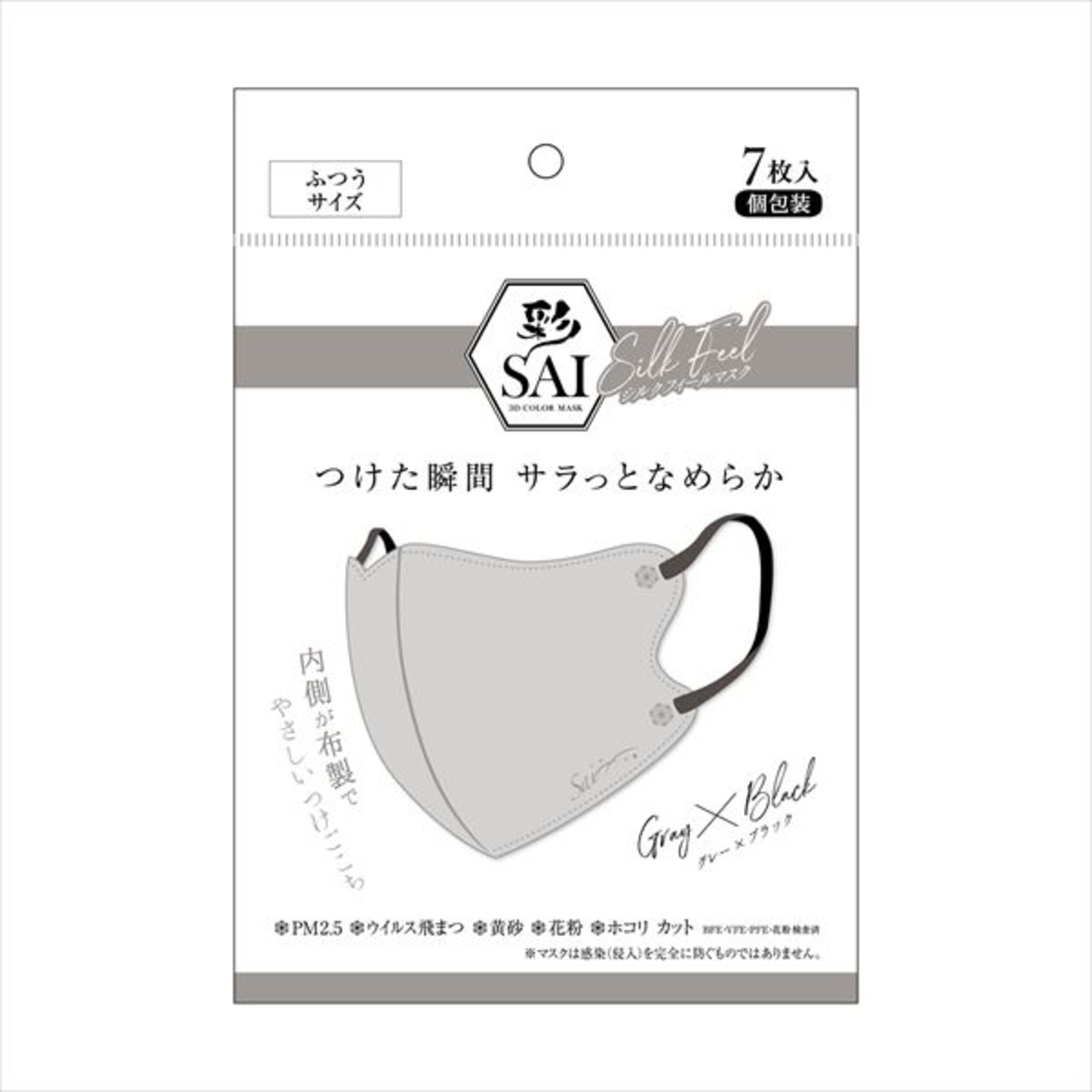 ■【商品名】: 【まとめ買い】彩シルクフィールマスク グレー×ブラック 普通7枚×10点セット