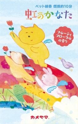 ■【説明】:フルーティフローラルのペット向けお線香。パッケージイラストは虹の橋という詩に基づいて作成