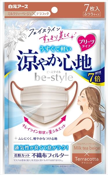 【まとめ買い】ビースタイル プリーツタイプ 涼やか心地 ミルクティーベージュ×テラコッタ 7枚入 【マスク】【HRM-20699050-3】×10点セット