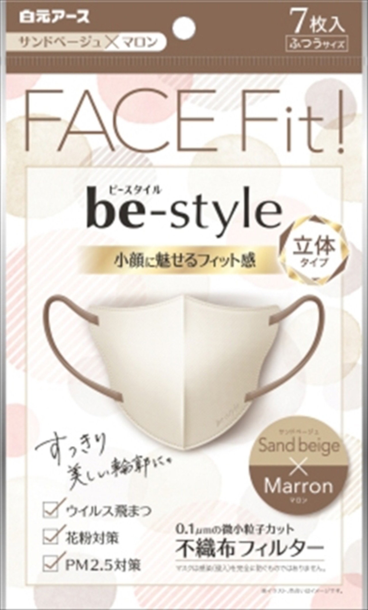 【まとめ買い】ビースタイル 立体タイプ ふつうサイズ サンドベージュ×マロン 7枚入 【 白元アース 】 【 マスク 】【HRM-19733448-3】×10点セット