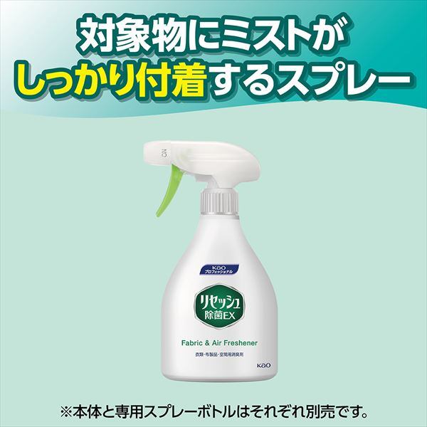 ■【説明】:〔リセッシュ除菌EX業務用専用つめかえ容器〕軽い力でスプレーできて、ミストがしっかり付着する容器。(こんな場面に)●ホテル・旅館:従業員様の制服ケアに。客室の清掃用に。●飲食店、カラオケ店:従業員様の制服ケアに。●病院、介護施設:居室のニオイ対策に。「リセッシュ除菌EX業務用」(別売り)を入れてご使用ください。※本品は空容器です。