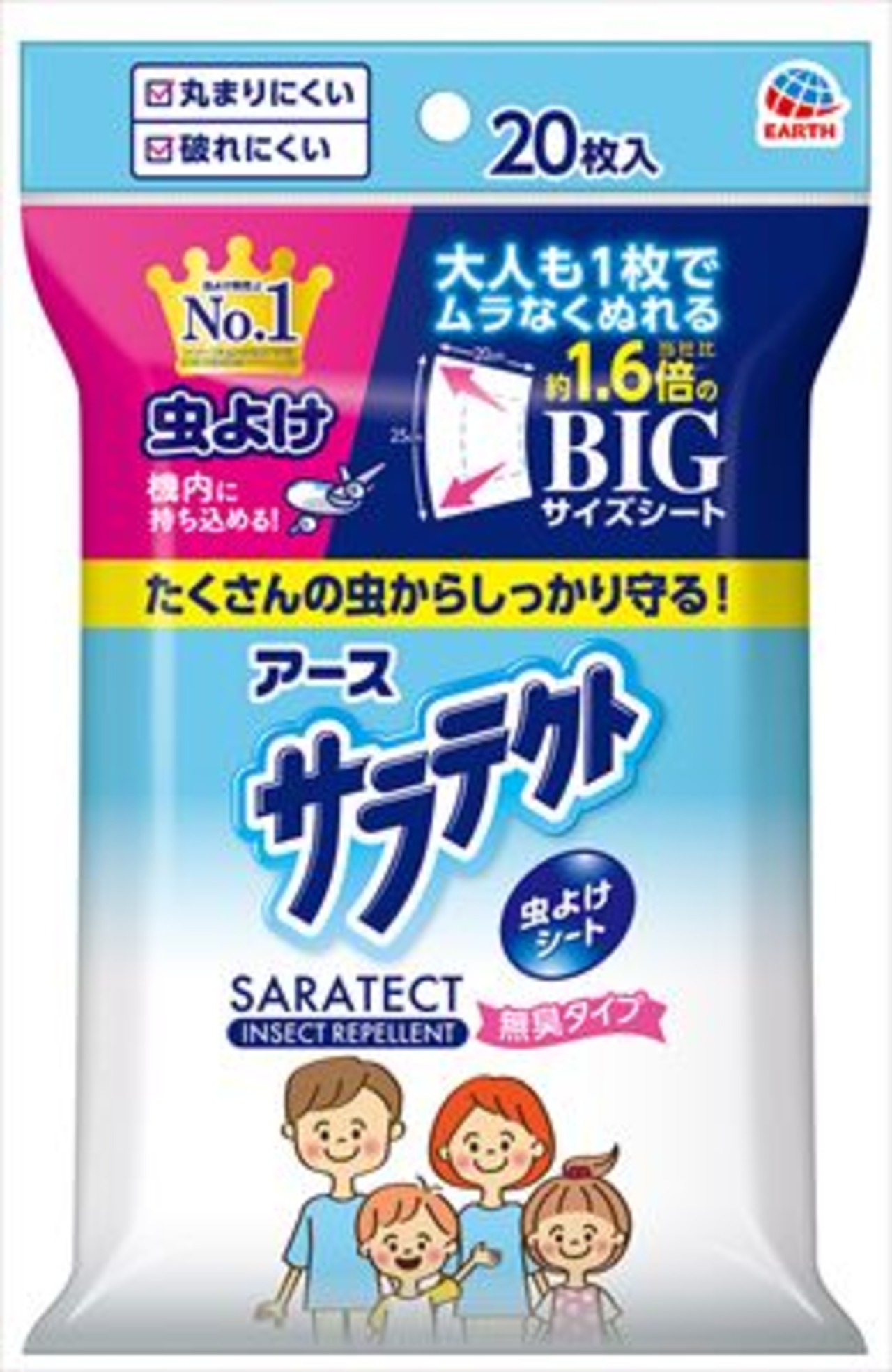 ■【説明】:持ち運びに便利なシートタイプの虫よけです。大人も1枚でムラなくぬれる、当社比約1.5倍のBIGサイズシートです。お肌にやさしいウォーターイン&4種のうるおい成分配合。※HD函仕様です。