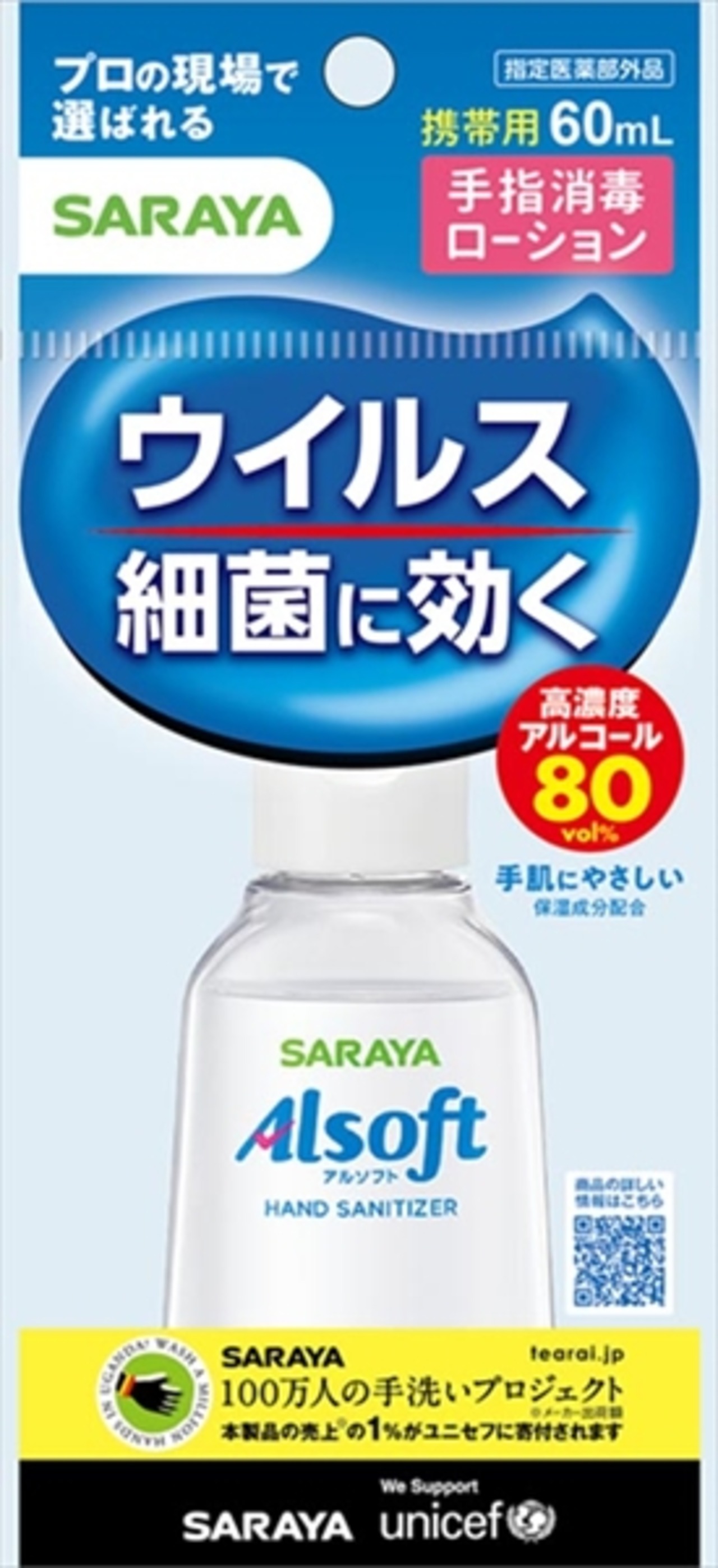 【まとめ買い】アルソフト 手指消毒ローション 携帯用 60ml 【 サラヤ 】 【 消毒用アルコール 】【HRM-18849898-3】×6点セット