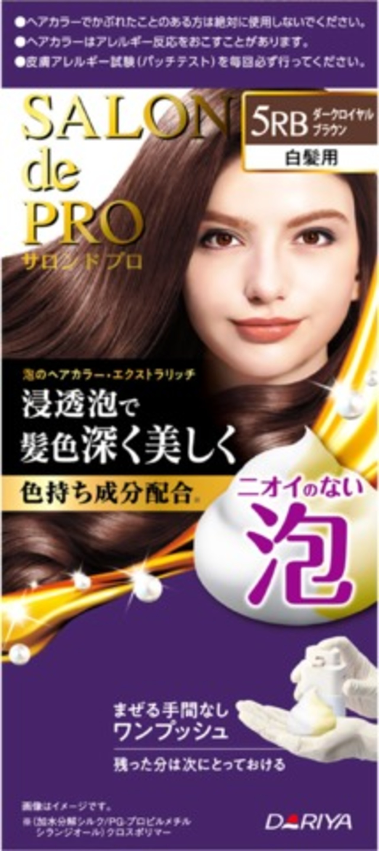 ■【説明】:ニオイがなく、自分も周りも快適な泡タイプの白髪染め。色持ち成分を配合した「浸透泡」が染料を素早く届け、美しい髪色に仕上げます。