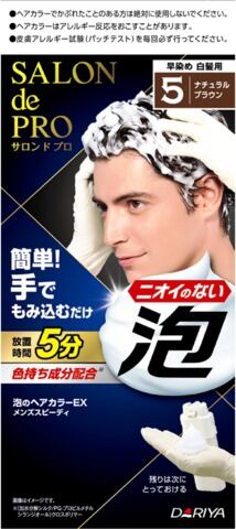 ■【説明】:ニオイがなく、自分も周りも快適な泡タイプの白髪染め。色持ち成分を配合した「浸透泡」が染料を素早く届け、放置5分でしっかり染め上げます。