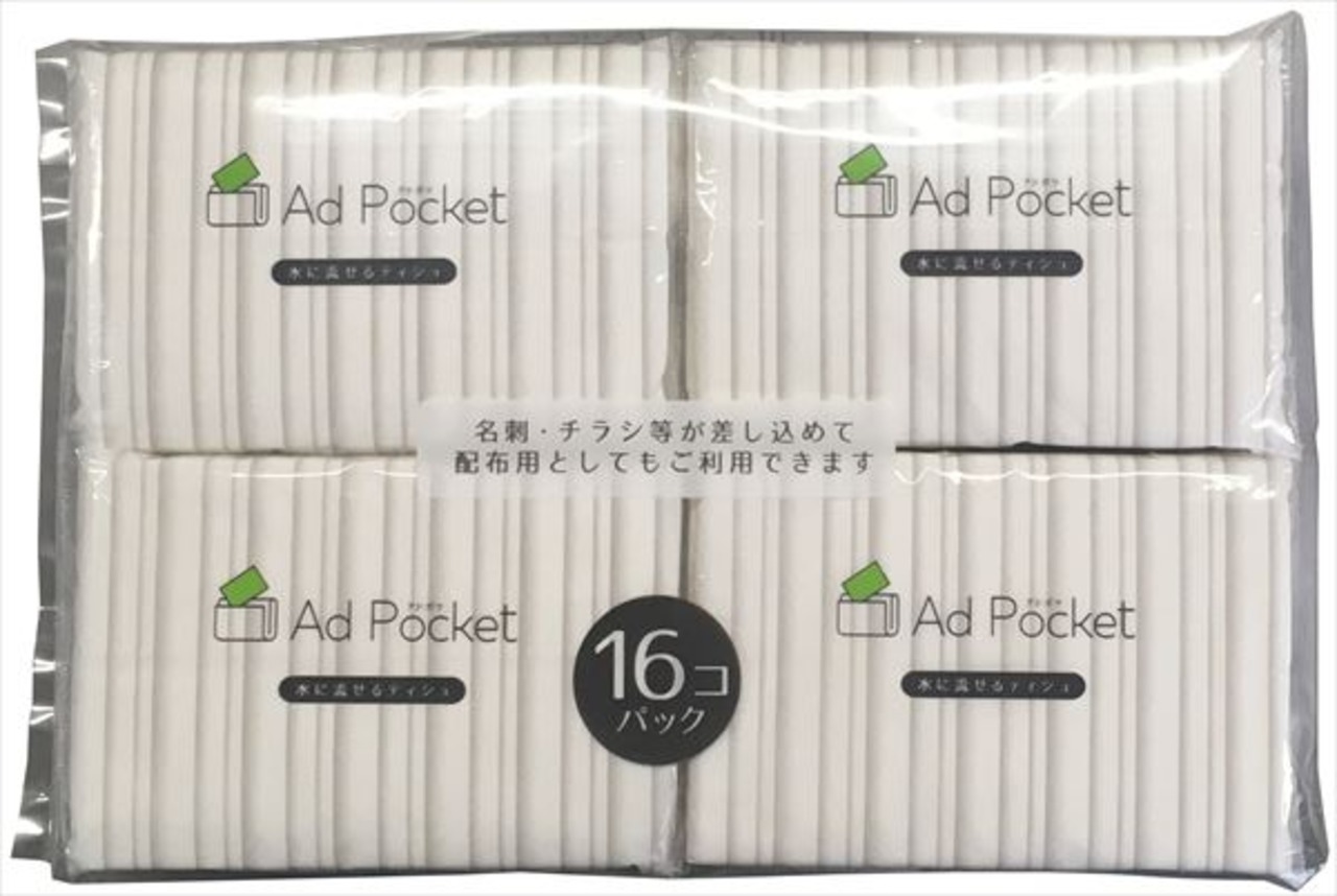 【まとめ買い】水に流せるふんわりポケットティッシュ アドポケット付 16個パック 【 和光製紙 】【HRM-22522164-1】×20点セット