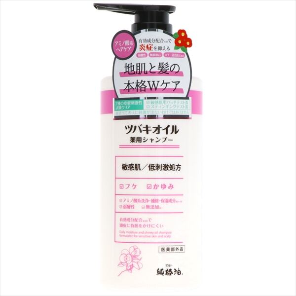 ■【説明】:”地肌と髪の本格Wケア”をコンセプトに、国産椿油配合で敏感肌・低刺激処方の薬用シャンプーシリーズ。シャンプーは4つの無添加(ラウレスフリー、合成着色料フリー、シリコンフリー、動物性原料フリー)、18種類のアミノ酸系成分配合で優しくすっきり洗い流し、コンディショナーは合成着色料フリー、15種類のアミノ酸系成分配合でしっとり艶感のある髪へ導きます。双方共に弱酸性、有効成分(抗炎症成分)配合でふけ・かゆみを防ぎます。カラー退色防止成分配合で、頭皮だけではなく髪へもアプローチした商品です。2種類(スティンギングテ