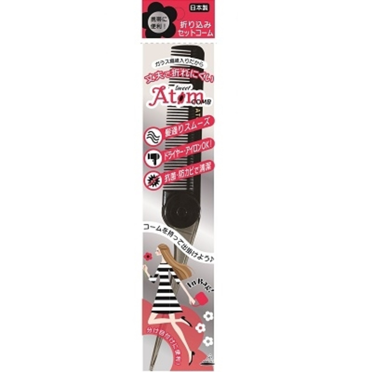■【説明】:丈夫で折れにくくヘアアイロン・ドライヤー使用ができる折込携帯コーム。尖った先端で分け目づけやアレンジに便利。