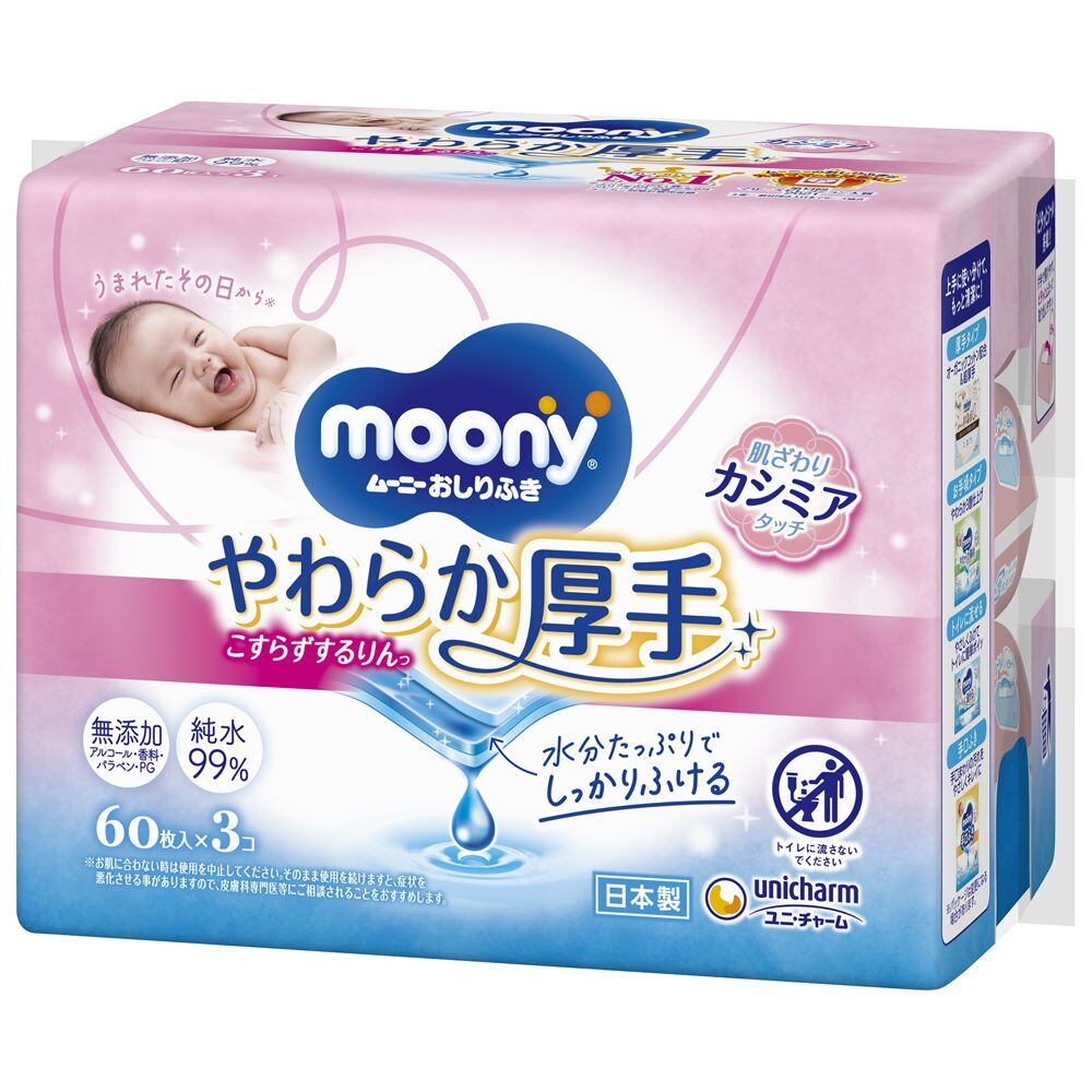 【まとめ買い】ムーニーおしりふきやわらか厚手詰替60枚×3 【 ユニ・チャーム 】 【 おしりふき 】【HRM-18155093-1】×8点セット