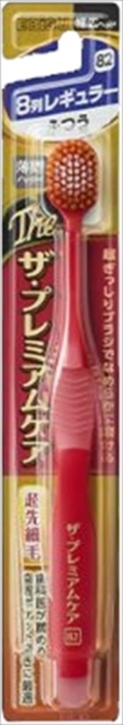 ■【説明】:幅広ヘッドハブラシの頂点へ「ザ・プレミアムケア」がパッケージリニューアル。ヘッドサイズと毛の硬度表示をより分かりやすくし、ベースカラーを明るくしてブランド名の視認性を。薄型ヘッドで磨き残しの多い奥歯まで毛先が届く。歯ぐきにやさしいソフト毛、歯面を磨くミディアム毛、歯の凹凸の汚れを落とすハード毛の3種類の毛のかたさ。超先細毛とフラット毛の2種類の毛先。歯を広くカバーする8列レギュラーヘッド。