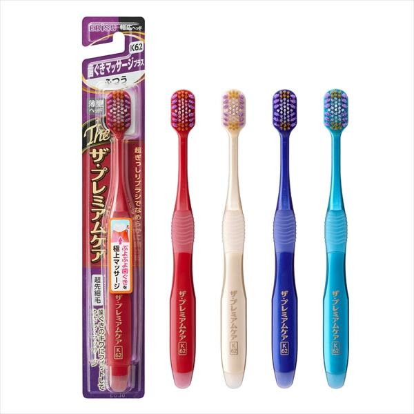 ■【説明】:幅広ヘッドハブラシの頂点へ「ザ・プレミアムケアセレクトシリーズ」がパッケージリニューアル。商品特徴と毛の硬度表示をより分かりやすくし、ベースカラーを明るくしてブランド名の視認性を。3本に分割した毛先と歯ぐきのキワにフィットする配列でやさしくマッサージ&歯周ケア。3種類の毛のかたさと2種類の毛先でなめらかに磨きあげる。薄型ヘッドで磨き残しの多い奥歯まで毛先が届く。