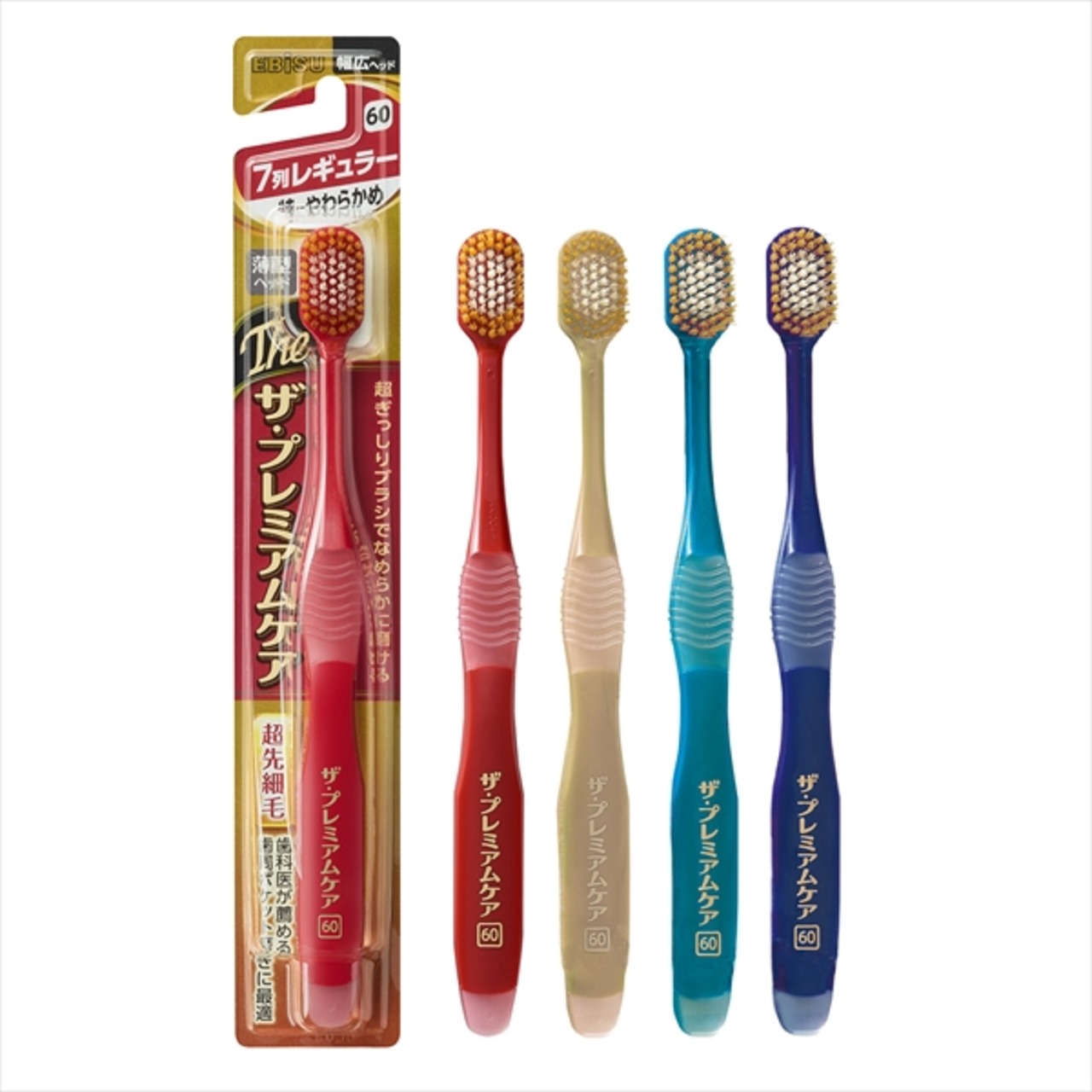 ■【説明】:幅広ヘッドハブラシの頂点へ「ザ・プレミアムケア」がパッケージリニューアル。ヘッドサイズと毛の硬度表示をより分かりやすくし、ベースカラーを明るくしてブランド名の視認性を。薄型ヘッドで磨き残しの多い奥歯まで毛先が届く。歯ぐきにやさしいソフト毛、歯面を磨くミディアム毛、歯の凹凸の汚れを落とすハード毛の3種類の毛のかたさ。超先細毛とフラット毛の2種類の毛先。効率よく磨ける7列レギュラーヘッド。