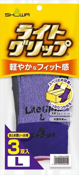 【まとめ買い】#341 ライトグリップ 3双入 Lパープル 【 ショーワ 】 【 手袋 】【HRM-22292295-3】×5点セット