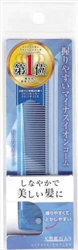 ■【説明】:マイナスイオンを発生する天然鉱石を配合した、握りやすいハンドルの折りたたみコームです。