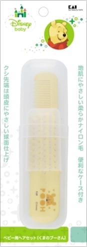 ■【説明】:赤ちゃんの細くて柔らかい髪に。ヘアブラシとクシに収納や携帯に便利なケースをつけました。ブラシは優しい肌あたりのを採用。クシは頭皮を痛めないよう先丸先端形状です。