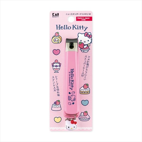 ■【説明】:シャープな切れ味 ステンレス刃ハローキティのデザインが入ったニュースタンダードツメキリ。キティチャーム付き。Sサイズ。