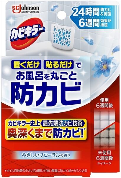 ■【説明】:●防カビ効果の高いカラシナの種子から抽出したエッセンシャルオイルを配合。●カビキラー史上最先端の防カビ技術で、タイル目地等の小さな穴(細孔)や狭い隙間の奥深くまで防カビ成分が届く!●6週間効果が持続!●置くだけ・貼るだけの簡単な使用方法